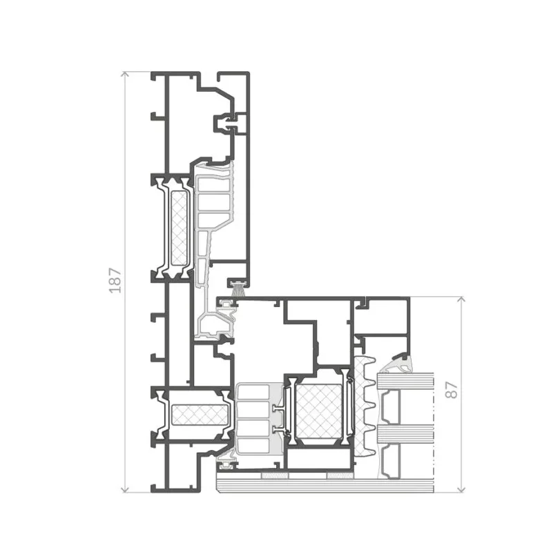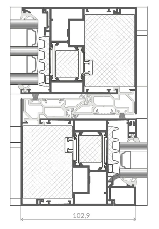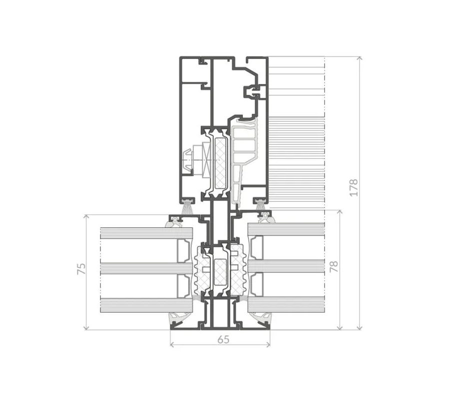 A highly striking solution. In the Ultra variant, the mullion width is only 25 mm. To increase structural strength, reinforcing profiles are mounted on the inside and outside at the face of the mullion. An interesting option is integrating LED lighting into the 25 mm mullion.