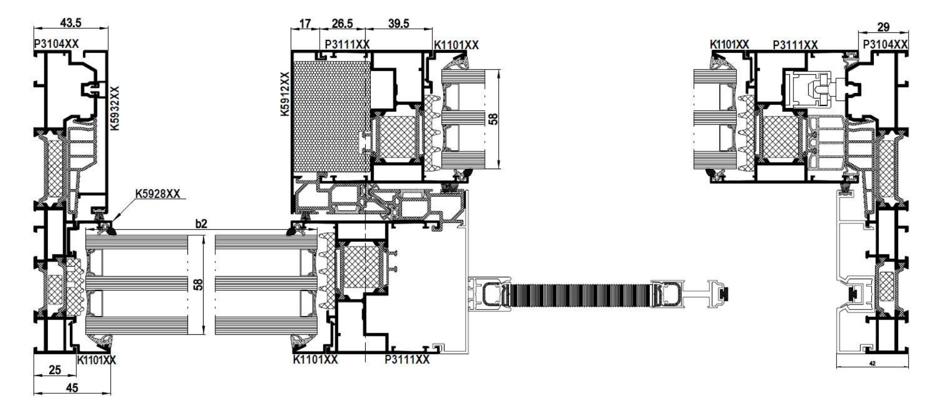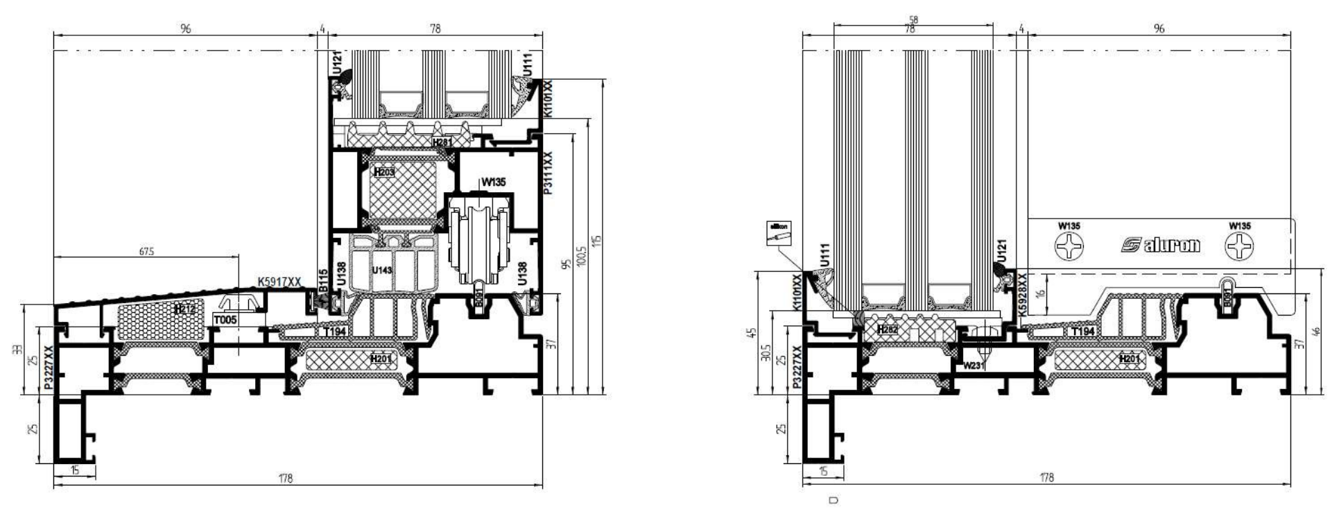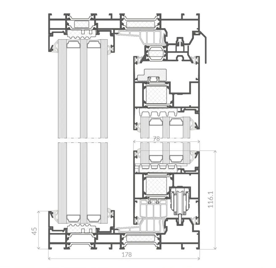 The AS 178HS PRO SLIM system makes it possible to completely integrate the door frame into the thermal insulation layer, which emphasises the decorative qualities of decorative facades and gives the building an individual and unique character. It is possible to produce constructions in all commercially available installation patterns (two- and three-track solution, solution with the possibility of using fixed glazing in inactive sashes, etc.).