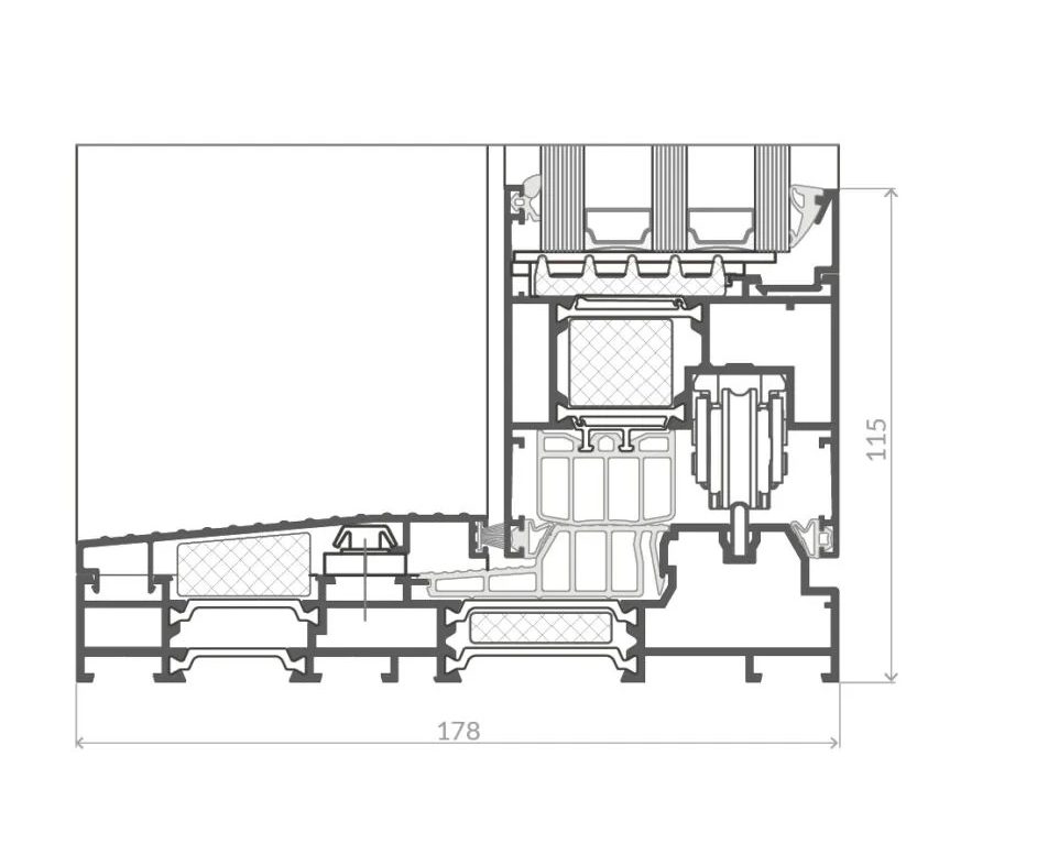 Aluron AS 178HS PRO SLIM is an all-glass lift and slide system combining innovative solutions with modern design. This system allows the construction of large movable terrace glazing with a low and warm threshold. Its design mechanisms allow the safe and comfortable sliding of heavy sashes, either manually or automatically. Fittings from renowned suppliers are used in the system to ensure comfortable sliding of even very heavy sashes. As a standard, ANTI-BI-METAL technology has been applied to guarantee durability and proper functioning regardless of significant temperature differences inside and outside the room, as well as flat door bolt catches to guarantee both aesthetics and user safety.
