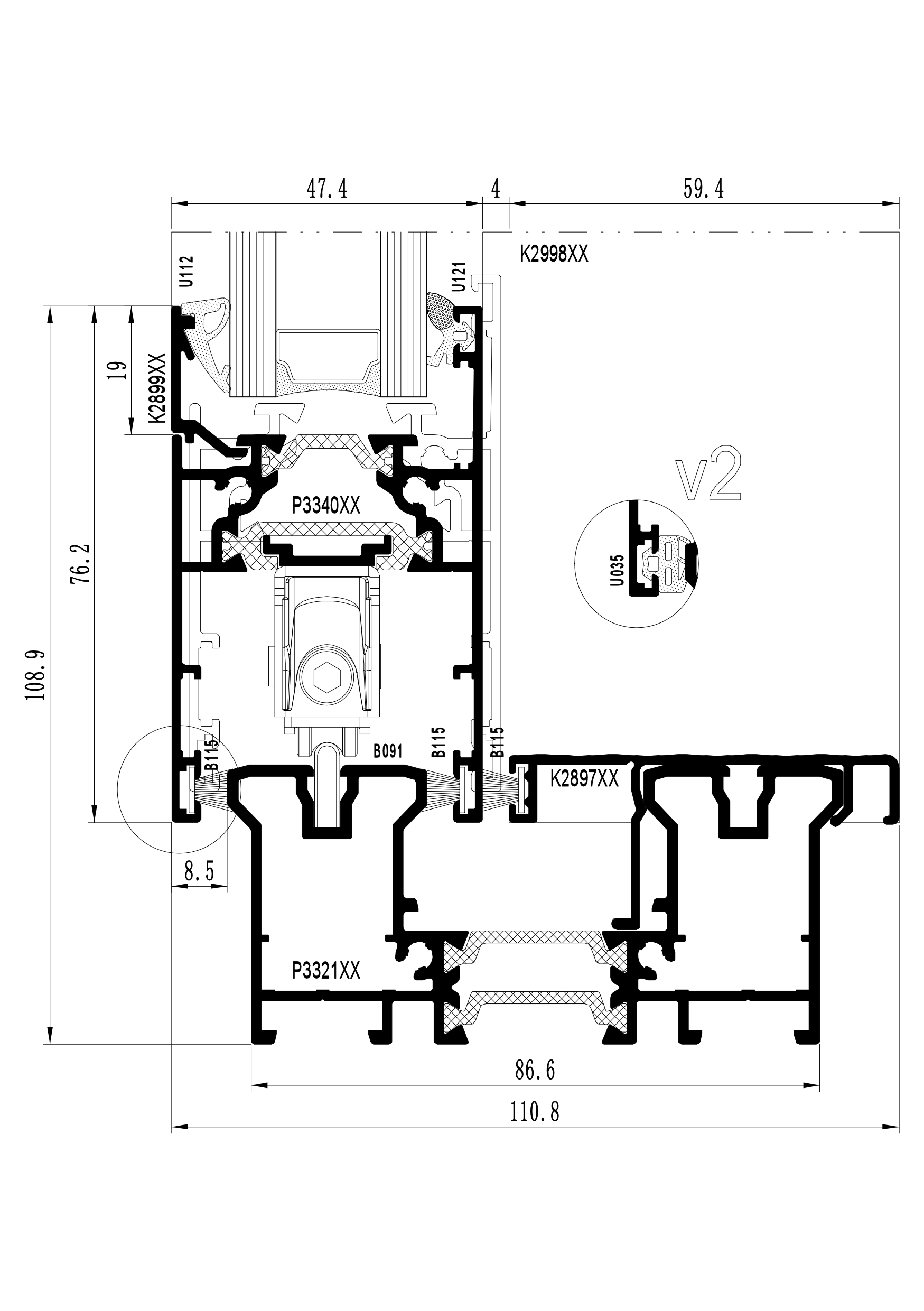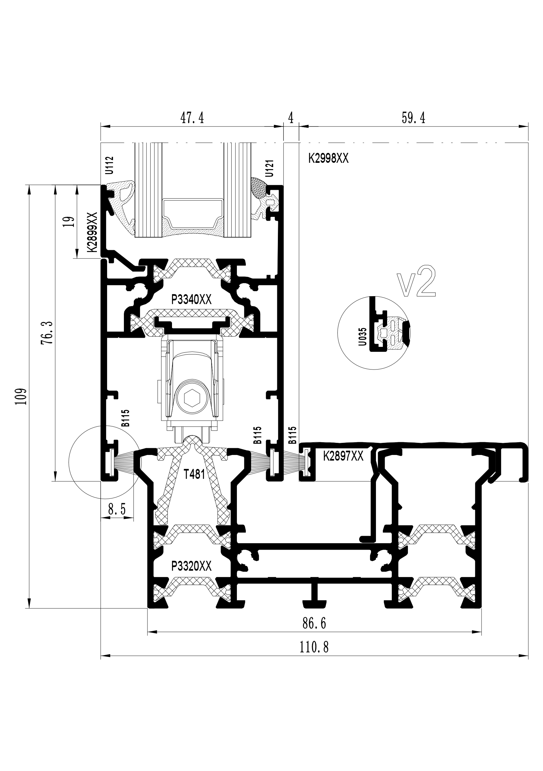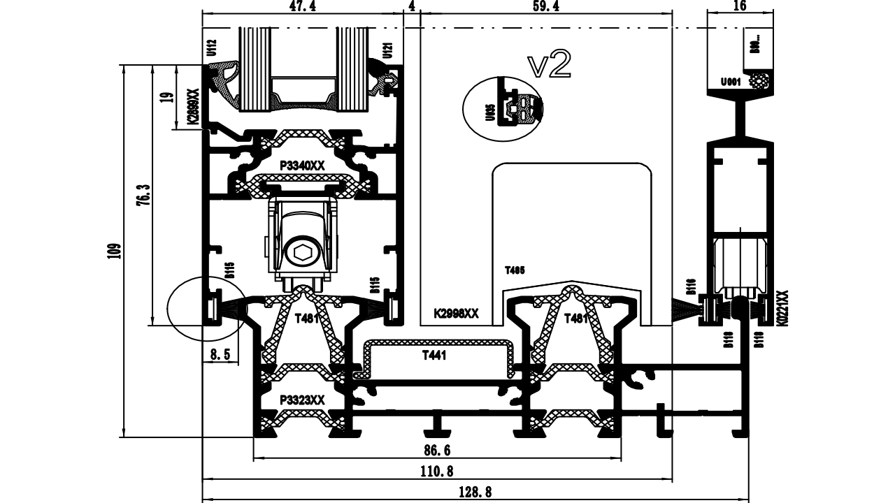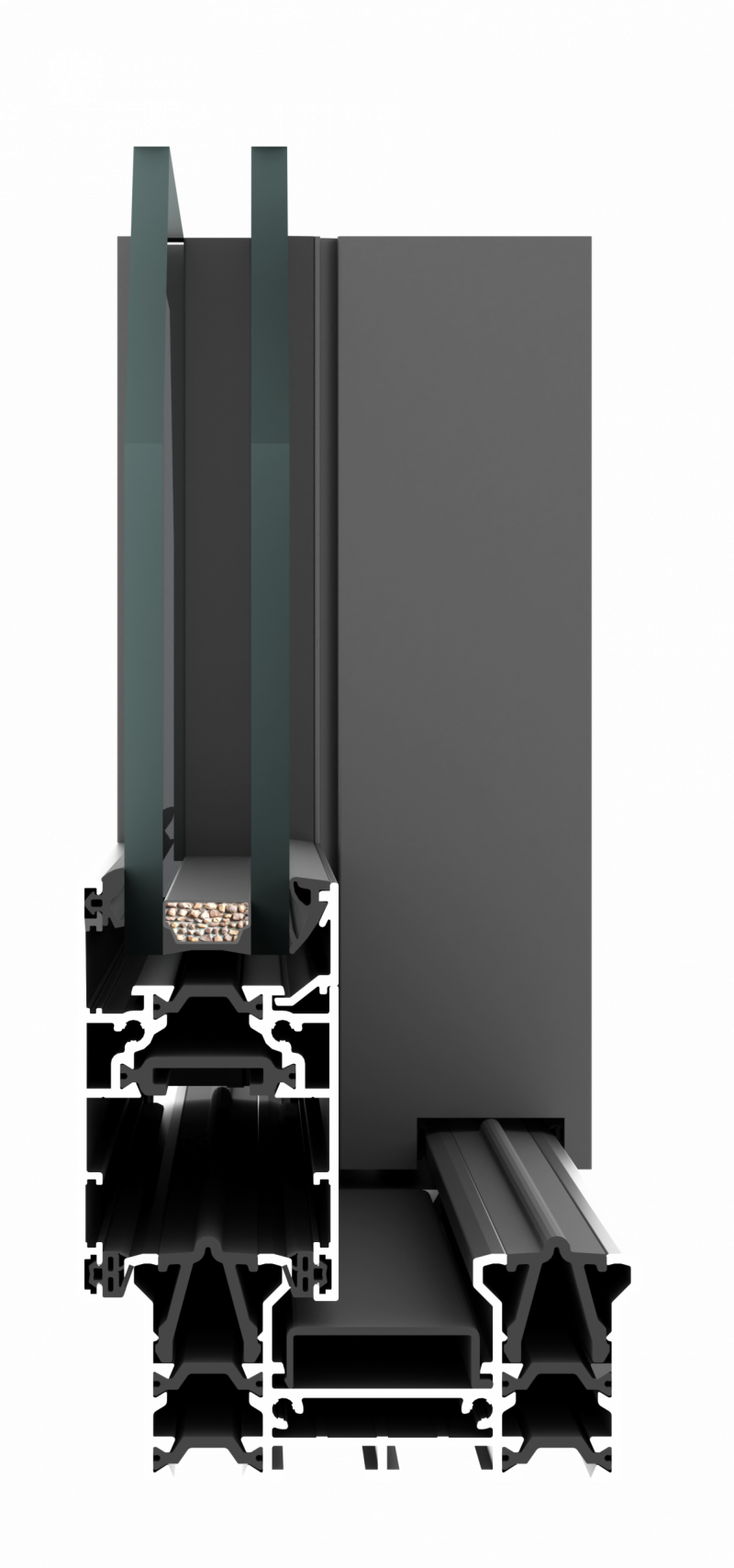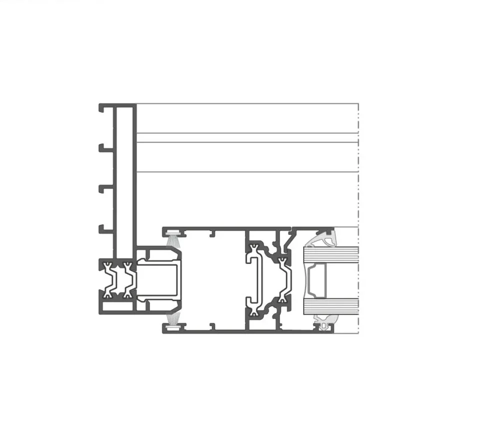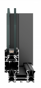 The system supports glazing units with a thickness of 21–32 mm in sliding doors. It enables thermal performance of Ud = 1.7–1.5 W/m²K when using double glazing.