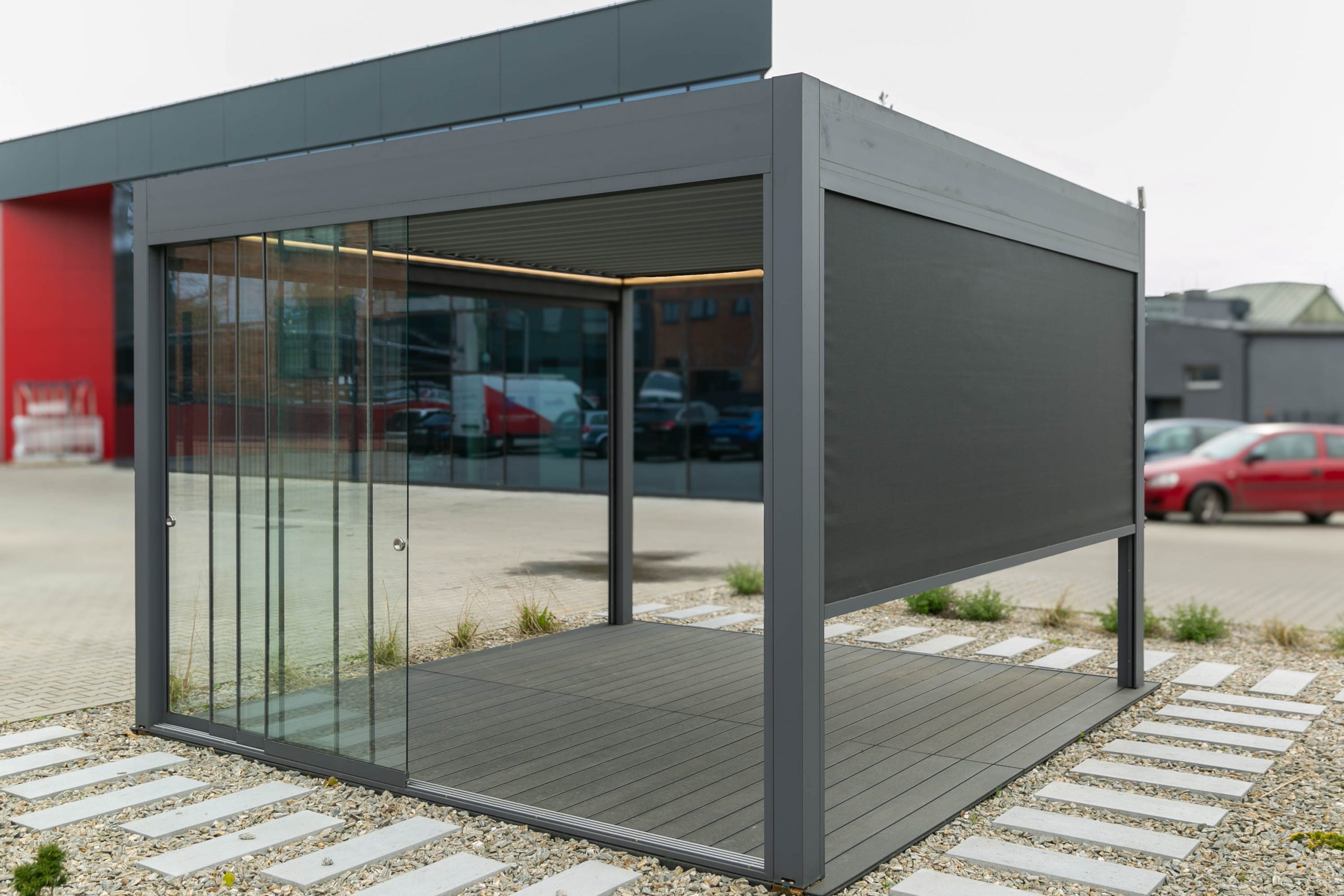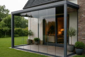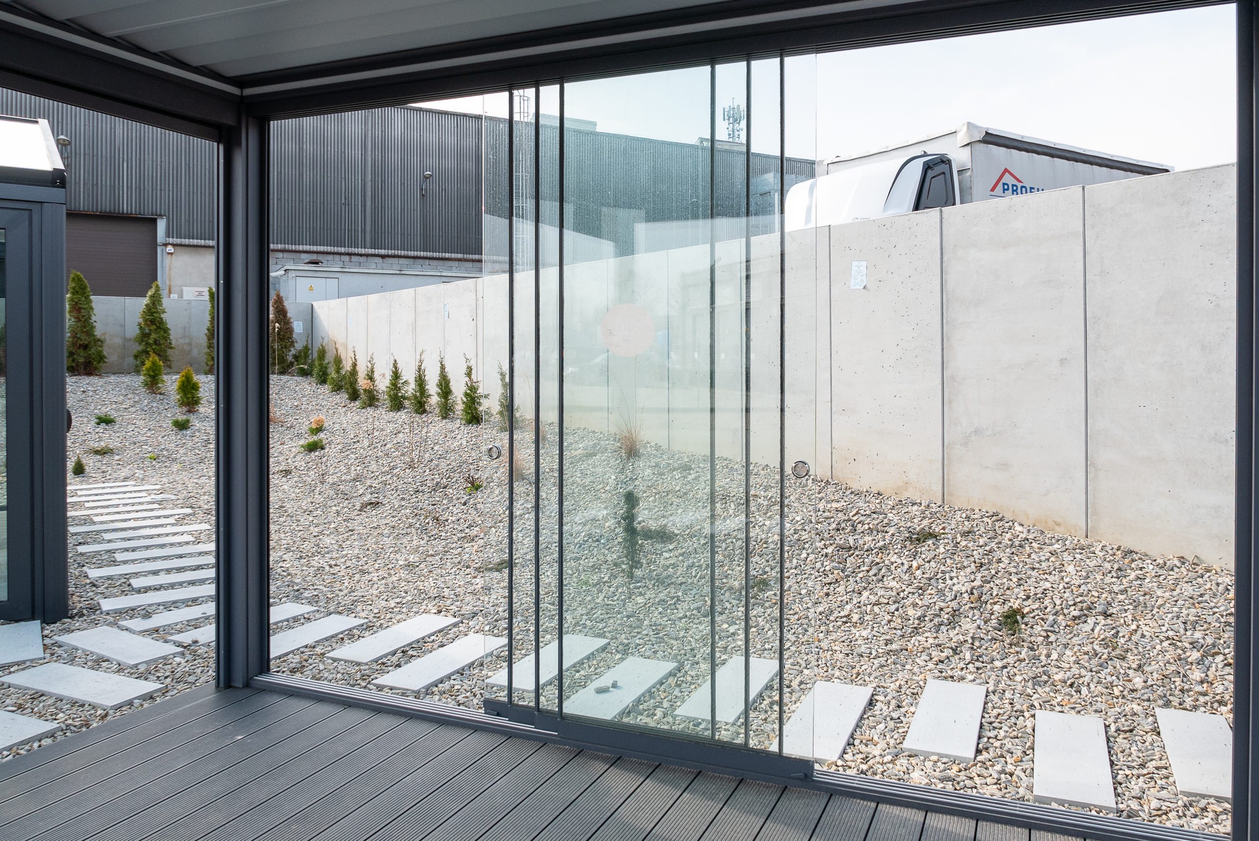The system is mainly used for enclosing aluminium cold roof structures and pergolas. Its primary function is to protect against rain and wind. A major advantage is its highly competitive price. The load capacity of the rollers is up to 80 kg. Easy Slide is an ideal complement to cold roof systems as well as Pergola Light.
