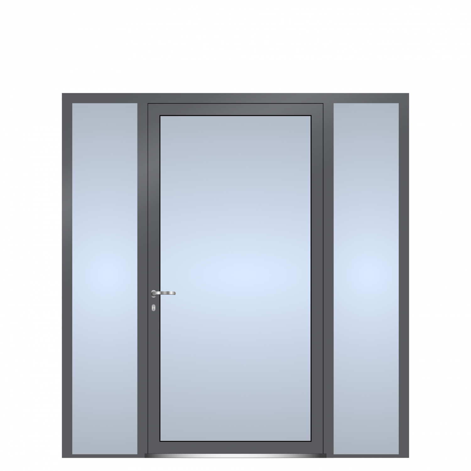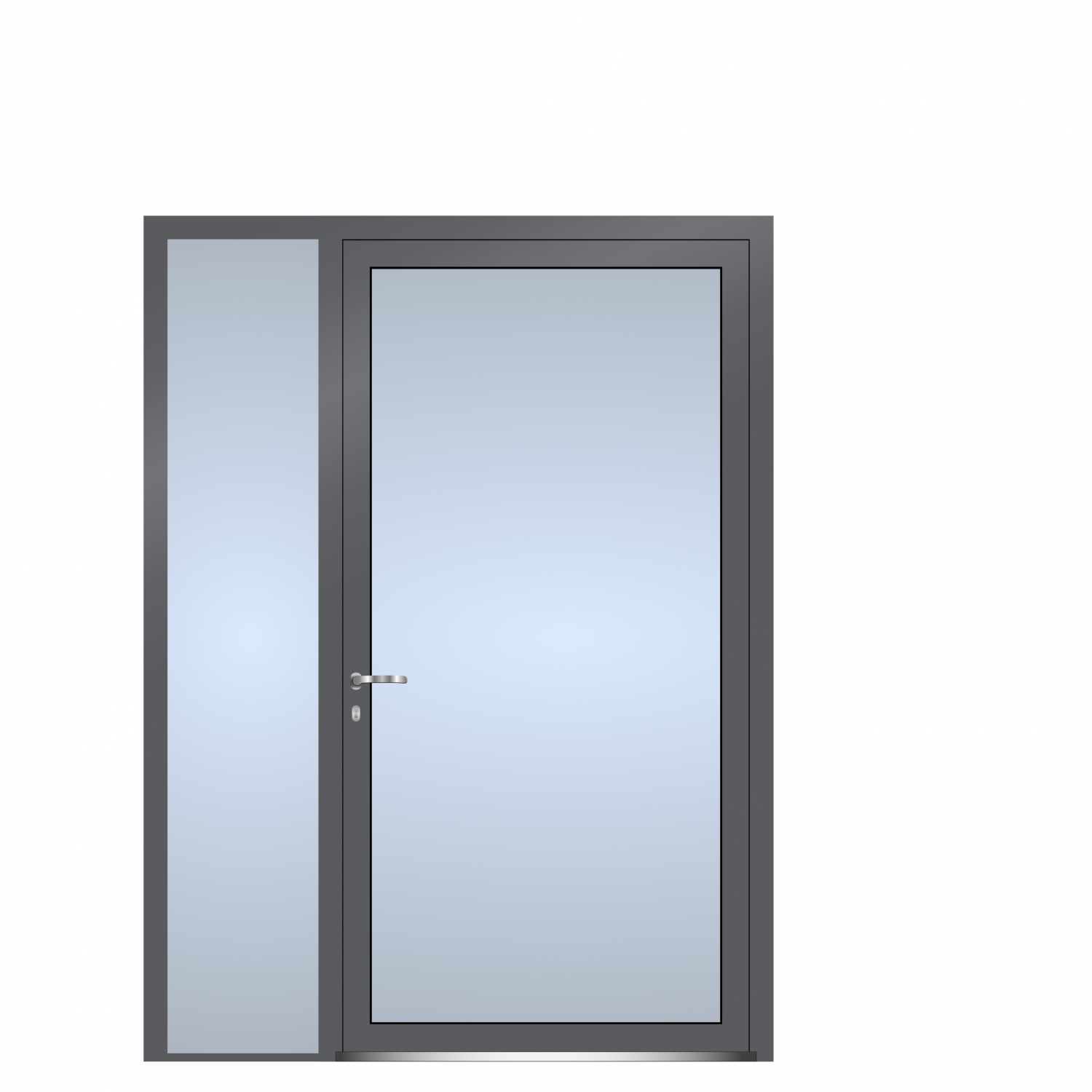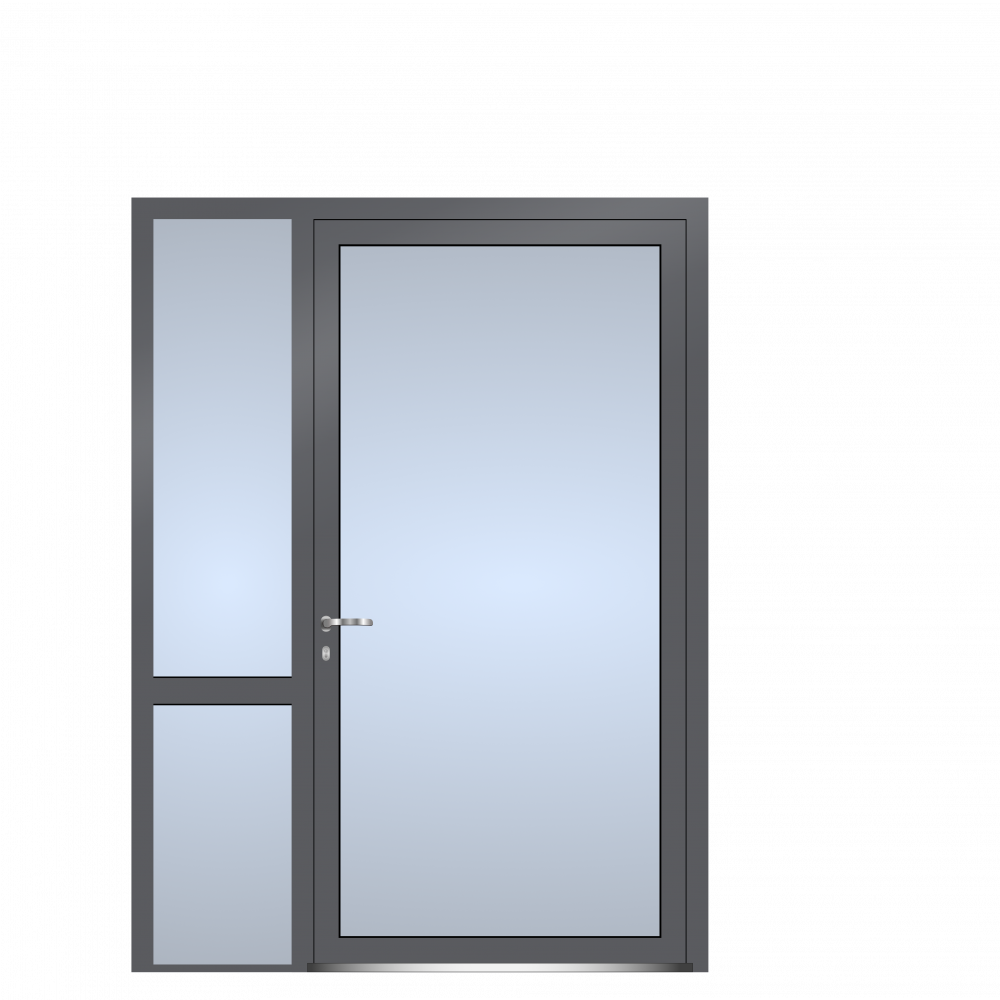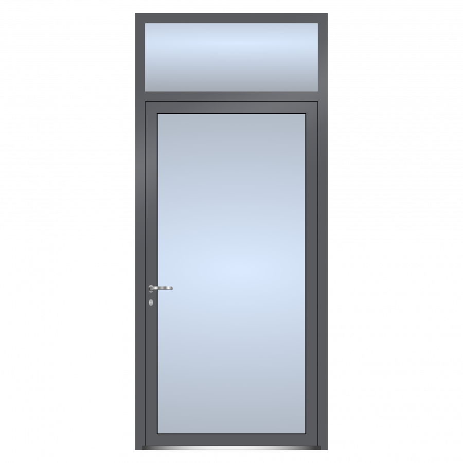 GlassThermo 75 is an aluminium door with large glazing designed for use where natural light is important. With this door, the installation width of the frame and leaf is 75 mm. The great advantage of this door is the much more competitive price compared to a panel door, with the use of a crossbar in the leaf and the possibility to individually plan the glazing. With GlassThermo 75, it is also possible to choose the PLUS version, which is equipped with additional thermal insulation wedges in the frame and leaf, giving the door increased thermal insulation properties. Thanks to the use of a low anodised threshold (approx. 20 mm) with a thermal break, barriers to movement between the outside and the inside of the building are eliminated. A wide choice of colours, glazing, handles and pulls makes it easy to match these doors to the style and character of the building. It is also possible to fit an integrated letterbox into the door. With GlassThermo 75, you have the choice of up to 4 door types, comprising single leaf doors and doors with different types of fanlight (side, top or double-sided).