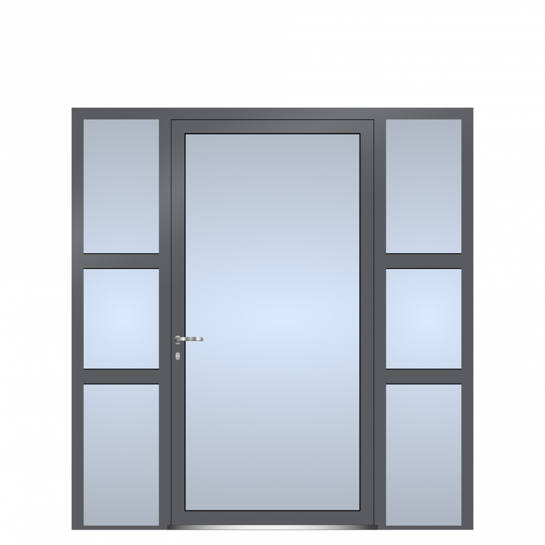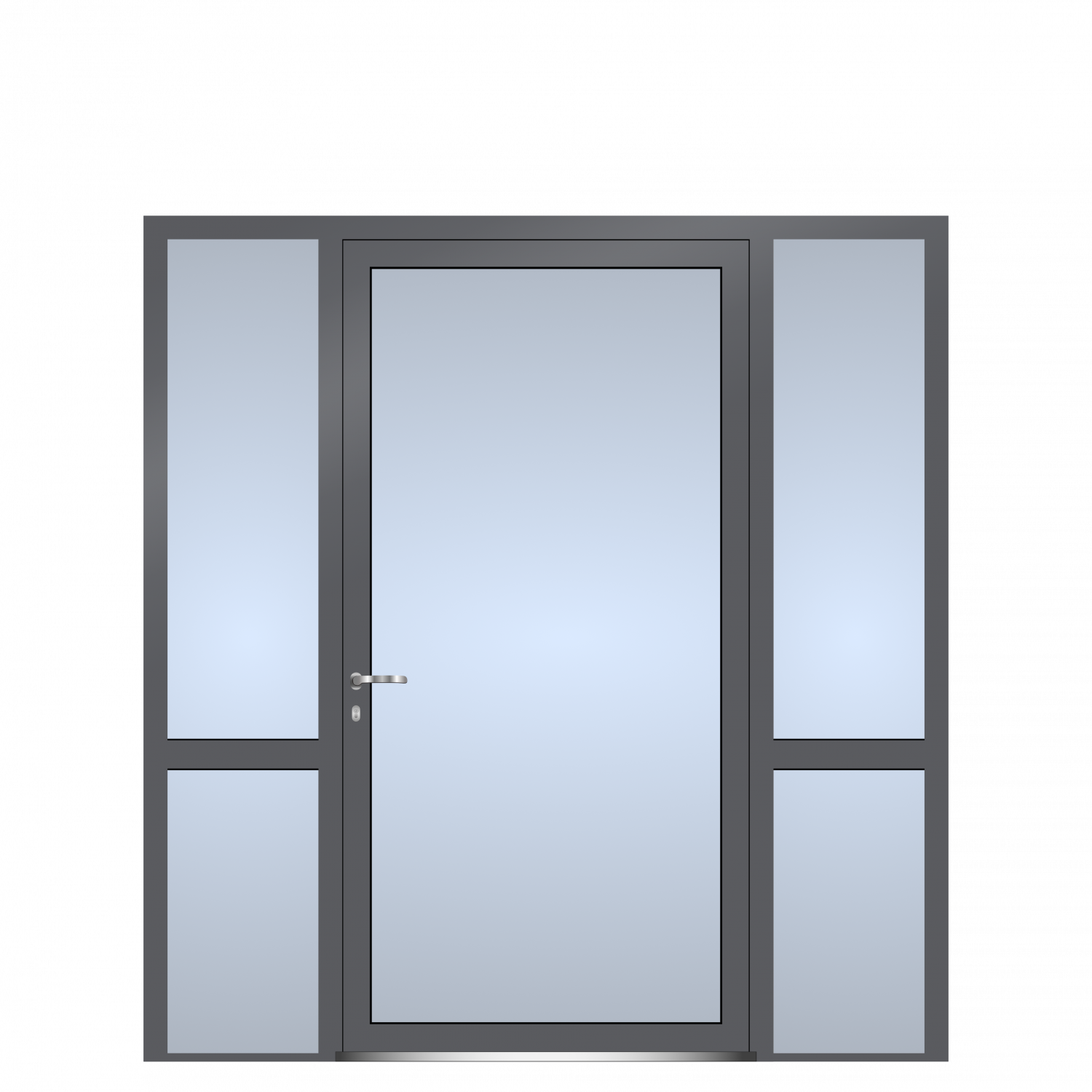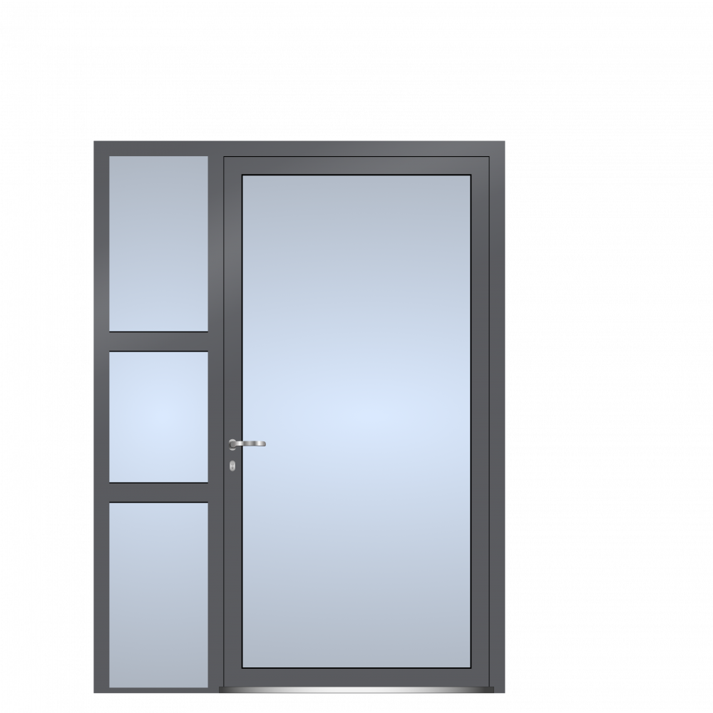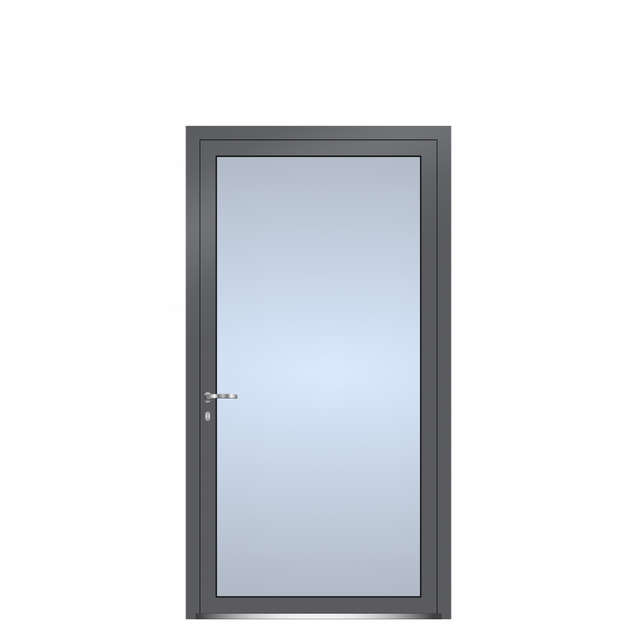 GlassThermo 75 is an aluminium door with large glazing designed for use where natural light is important. With this door, the installation width of the frame and leaf is 75 mm. The great advantage of this door is the much more competitive price compared to a panel door, with the use of a crossbar in the leaf and the possibility to individually plan the glazing. With GlassThermo 75, it is also possible to choose the PLUS version, which is equipped with additional thermal insulation wedges in the frame and leaf, giving the door increased thermal insulation properties. Thanks to the use of a low anodised threshold (approx. 20 mm) with a thermal break, barriers to movement between the outside and the inside of the building are eliminated. A wide choice of colours, glazing, handles and pulls makes it easy to match these doors to the style and character of the building. It is also possible to fit an integrated letterbox into the door. With GlassThermo 75, you have the choice of up to 4 door types, comprising single leaf doors and doors with different types of fanlight (side, top or double-sided).