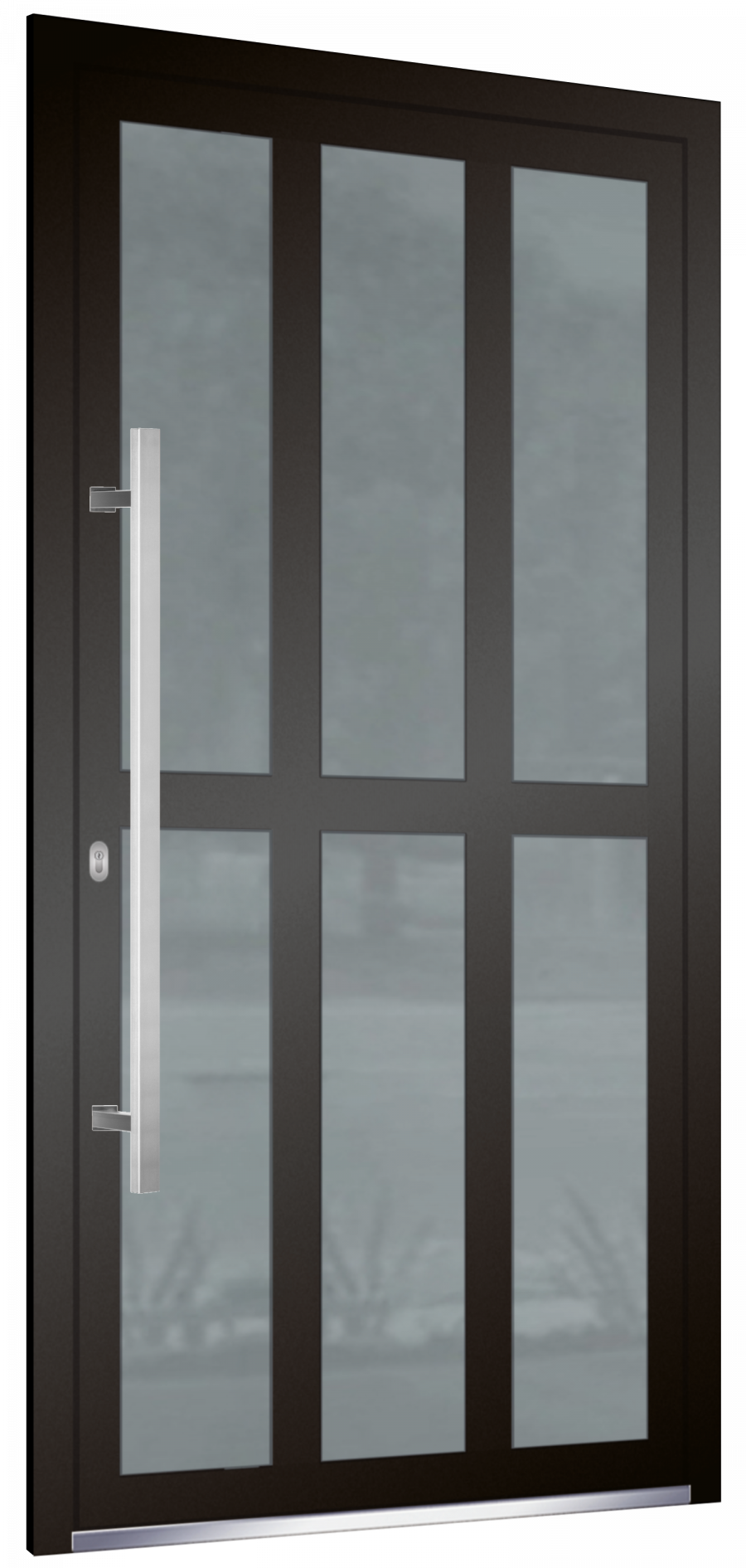 GlassThermo 75 is fitted as standard with a key-operated 3-point GU MR2 slat lock (3 keys as standard) with a BKS cylinder with clutch function. On the internal side, a handle and escutcheon on two stainless steel escutcheons are used. The door is set on three double-leaf hinges with a 3-level adjustment function lacquered in the same colour as the frame. Two types of handles in different lengths and 6 handles in different colours are available.