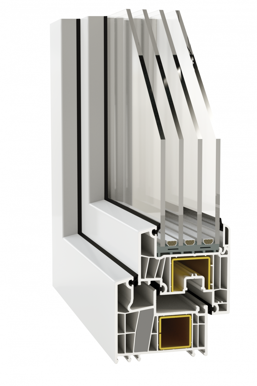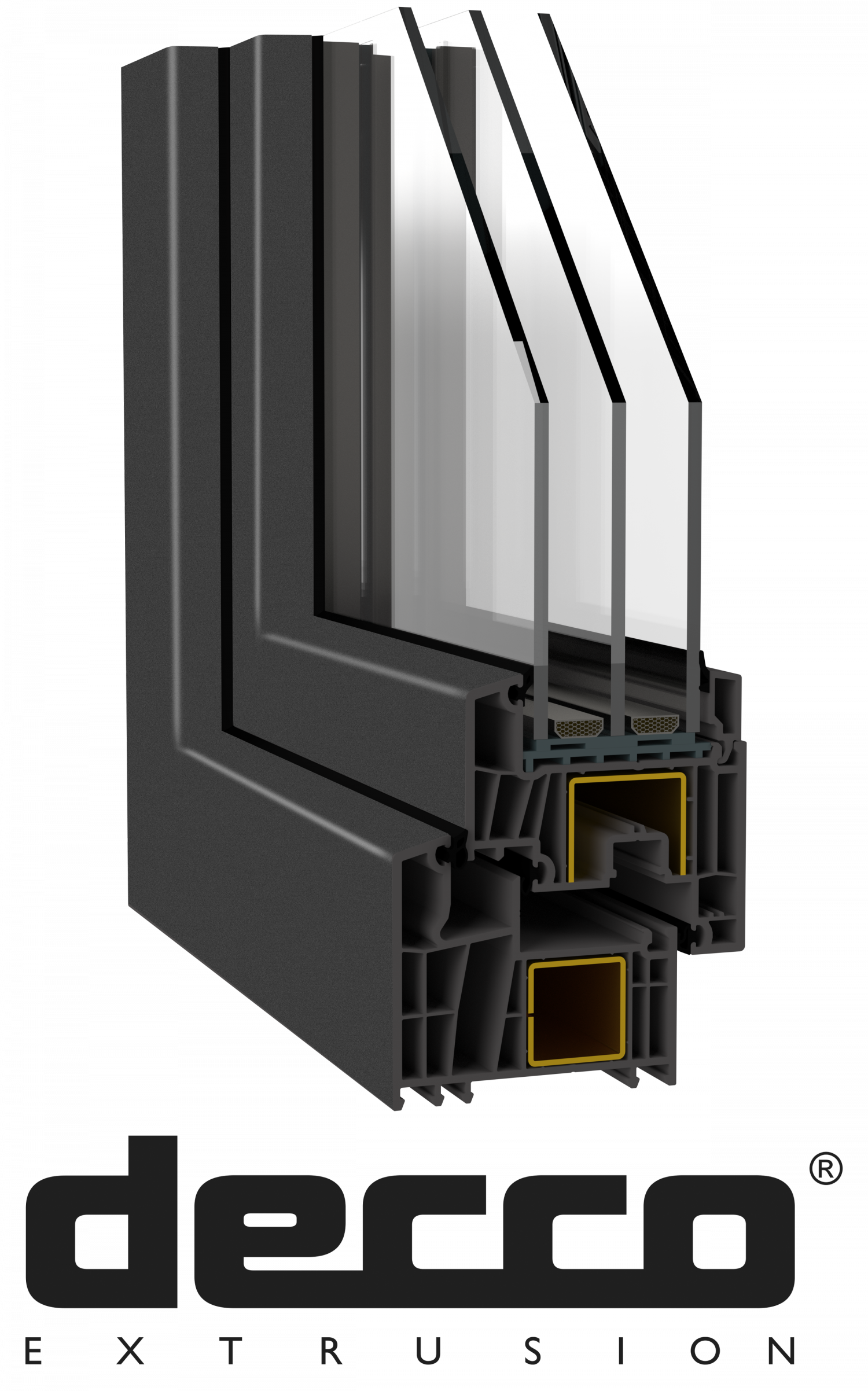 One of the most important advantages of the DECCO 83 system is its outstanding thermal insulation. Thanks to the advanced 7-chamber technology and additional third gasket, the profile achieves an impressive heat transfer coefficient Uw of 0.59 W/m²K (for a reference window with a 4/12/4/12/4/12/4 glazing unit)