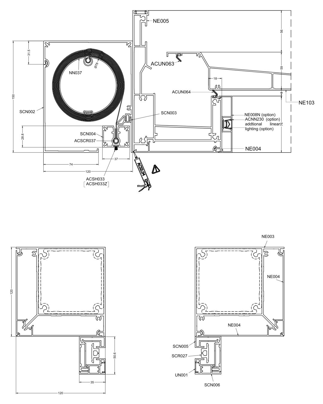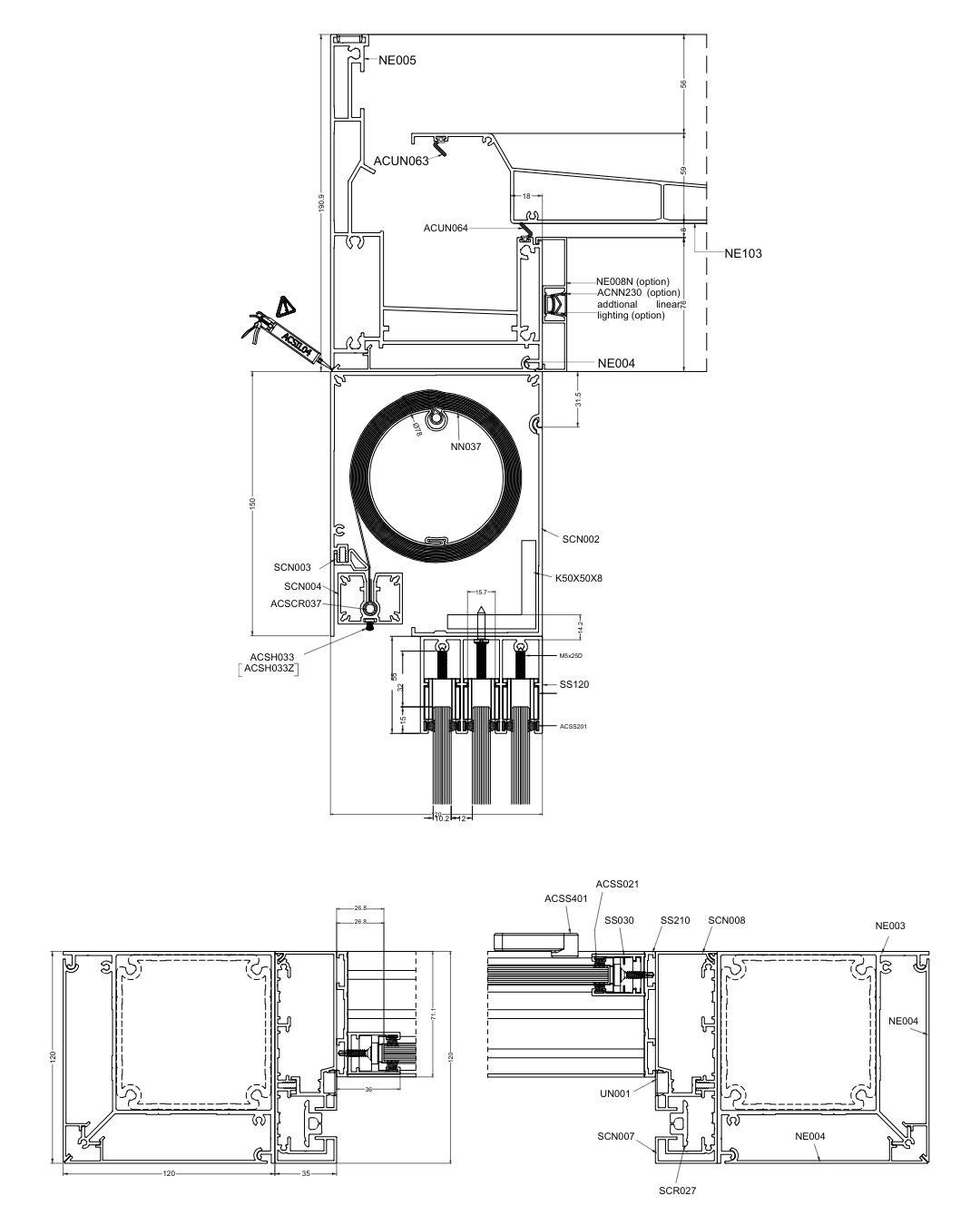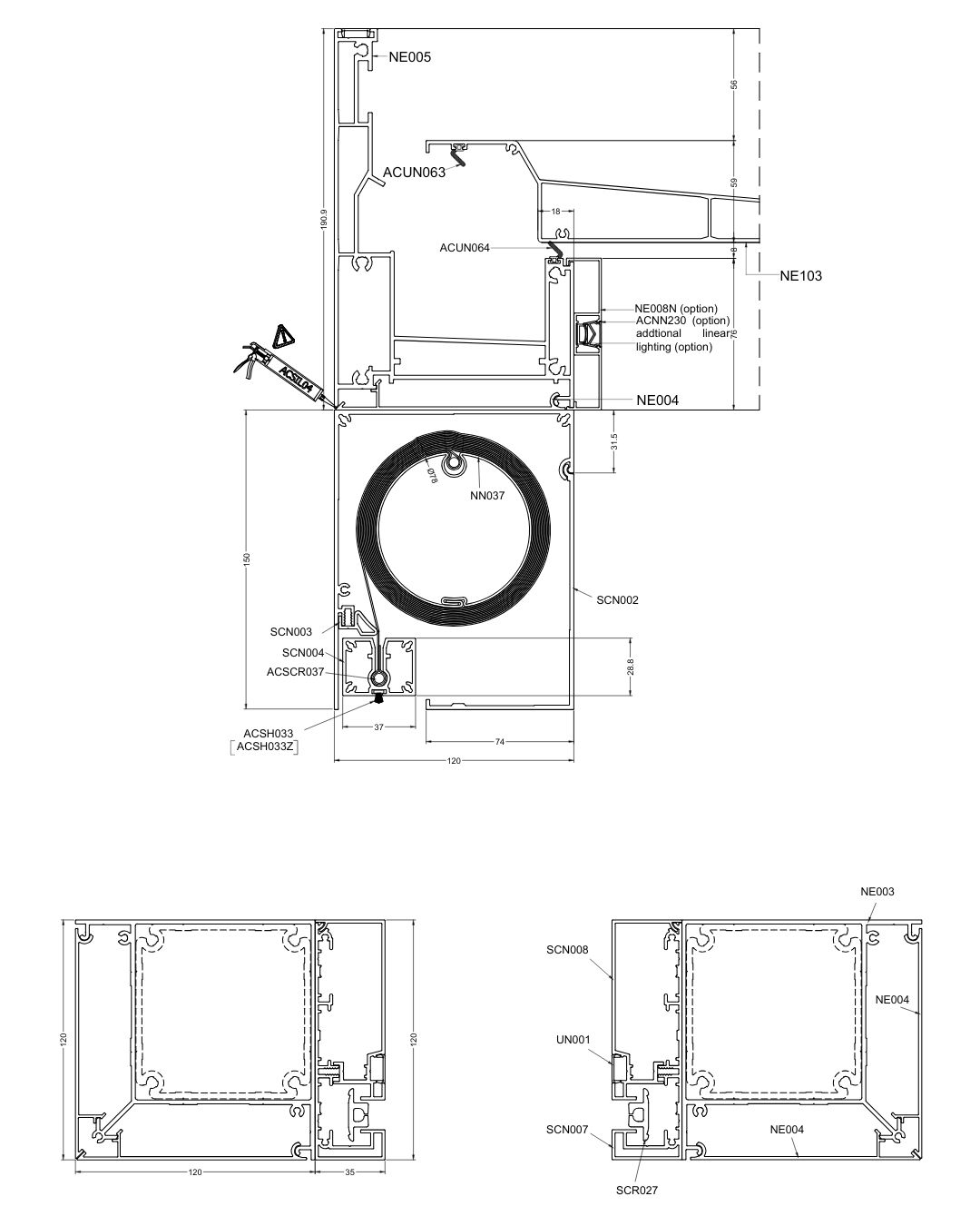 This allows even very wide glazed areas to be covered without dividing the structure into smaller modules.