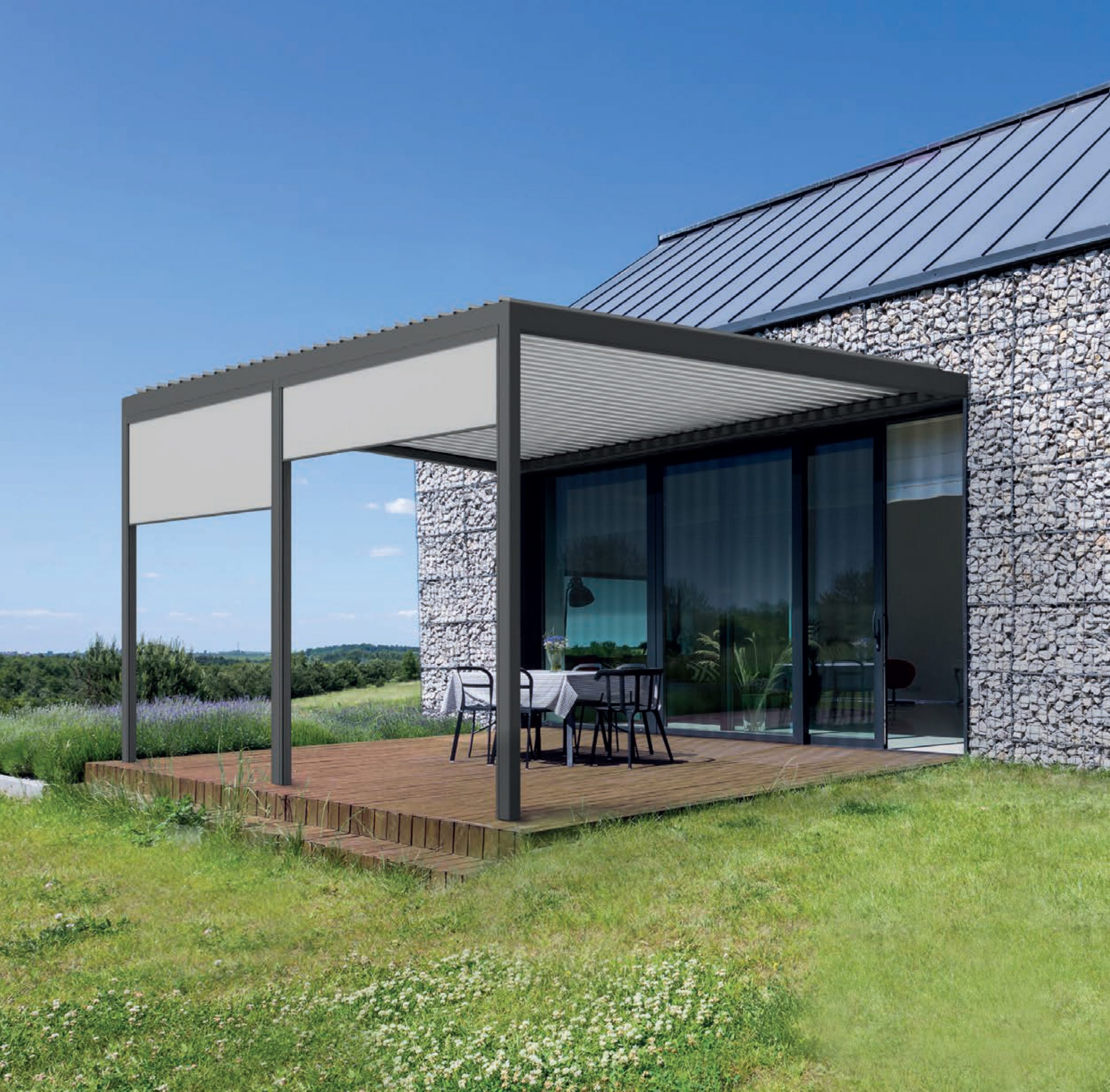 The aluminium lamellas roof can be set in an open or closed position, allowing you to adjust the light and shade depending on your needs.