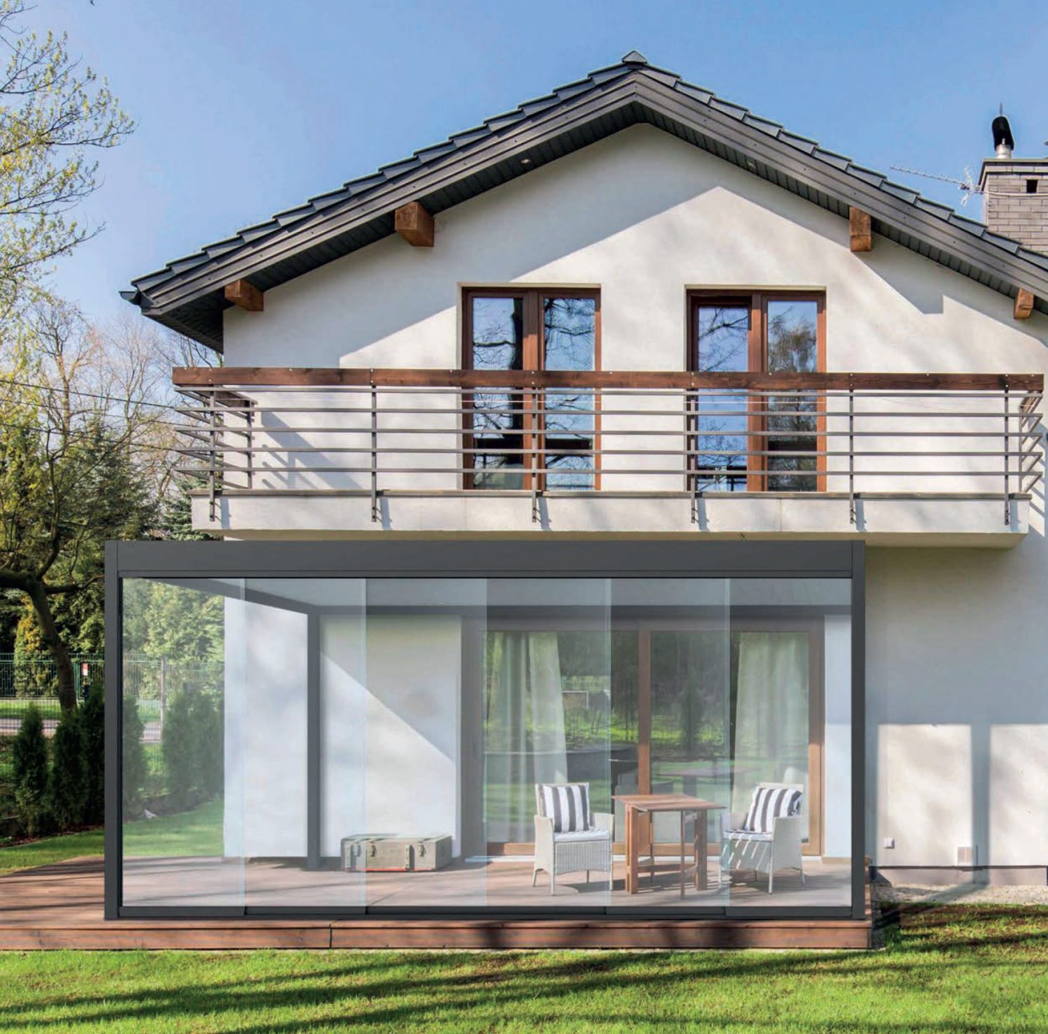 A modern solution for enclosing pergolas, terraces, balconies or commercial spaces.